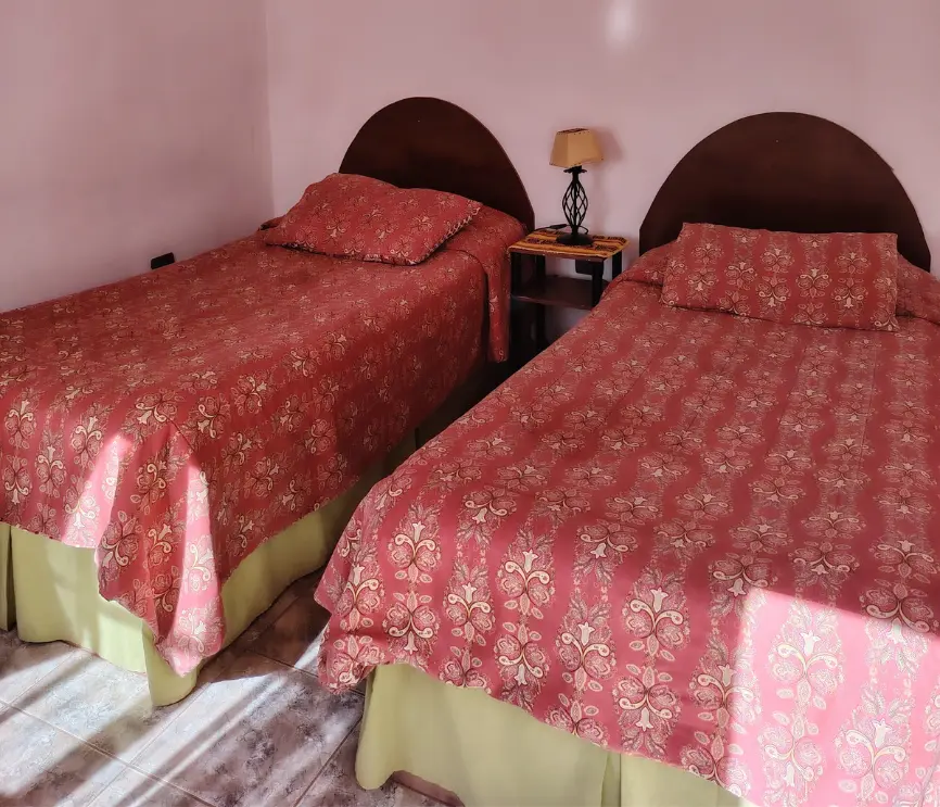 En Hostal Edén Atacameño tenemos una opción práctica y económica para dos personas. Esta habitación ofrece dos camas de plaza ½ y acceso a baño compartido. Su estilo moderno incluye muros de bloque, sin vigas a la vista y vista a un pasillo central. Ideal para quienes priorizan el ahorro sin perder la comodidad básica. Con acceso a cocina compartida, WiFi, terraza y amplios espacios comunes, es una alternativa funcional para tu estadía.